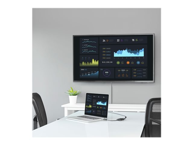 Ce convertisseur polyvalent prend en charge différentes résolutions, dont la haute définition 1080p, éliminant les frais liés à la mise à niveau d'un écran VGA pour des raisons de compatibilité. Pour plus de simplicité et de rapidité, aucun adaptateur secteur est nécessaire.