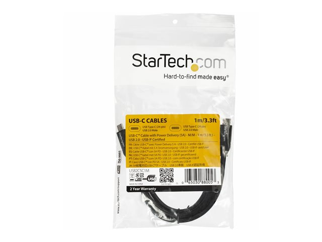StarTech.com Câble USB-C vers USB-C avec Power Delivery 5A de 1 m