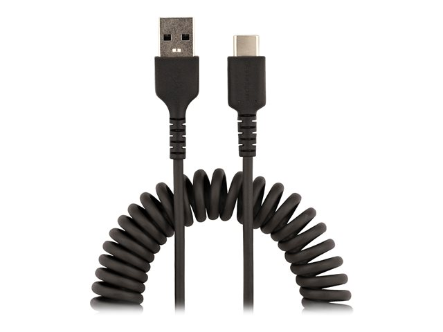 Cordon USB USB-C Enroulé à Usage Intensif - Câble USB-A vers USB-C en Fibre Aramide Robuste - Chargeur USB-C M/M - Adaptateur TB3 Noir (R2ACC-50C-USB-CABLE) - Câble USB - USB (M) pour 24 pin USB-C (M) - USB 2.0 - 3 A - 50 cm - bobiné - noir