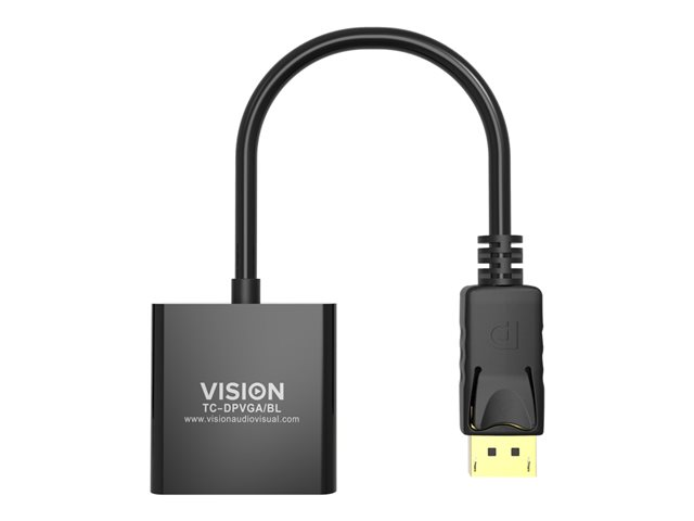 Se branche sur la prise DisplayPort de l'ordinateur portable et présente une prise VGA. Le circuit actif convertit le signal numérique en signal VGA analogique pour les dispositifs d'affichage sans entrée numérique.