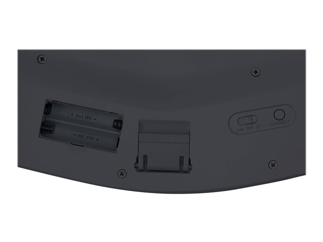 Avec un clavier divisé et penché avec inclinaison inverse ajustable et un repose-poignets intégré, le clavier sans fil Pro Fit Ergo approuvé par des ergonomes assure un confort optimal de vos mains. Les fonctionnalités incluent une double connectivité (2,4 GHz et Bluetooth 4.0 LE) avec cryptage AES 128 bits, la saisie discrète, des touches résistantes aux éclaboussures, des touches F de raccourcis, le verrouillage du défilement, des chiffres et des majuscules, 3 modes d'économie d'énergie et un récepteur remplaçable*. *Si le récepteur est perdu ou endommagé, achetez-en un autre et jumelez-le de nouveau à votre souris.