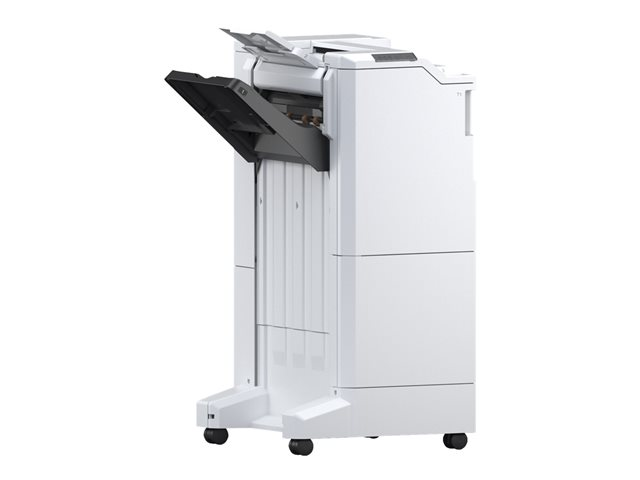 Le module de finition livret vous offre tout ce dont vous avez besoin pour imprimer vos livrets. Il dispose d'une capacité de sortie pouvant atteindre 3 000 feuilles et il permet de décaler les documents. En outre, il offre des fonctionnalités telles que la piqûre à cheval (jusqu'à 20 feuilles), le pli simple (jusqu'à 3 feuilles) et le pli roulé (jusqu'à 3 feuilles).