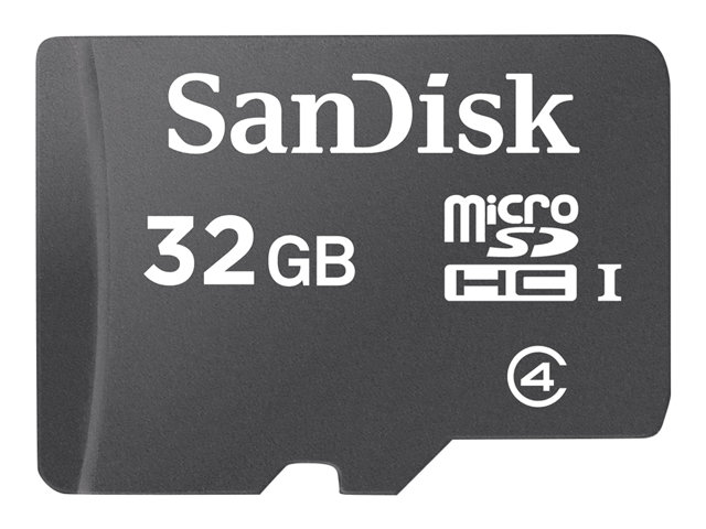 Description du produit SanDisk - carte mémoire flash - 32 Go - micro SDHC Type du Produit Carte mémoire flash Format Micro SDHC Capacité de stockage 32 Go Indice de vitesse Class 4 Couleur du boîtier Noir Garantie du fabricant Garantie de 5 ans -