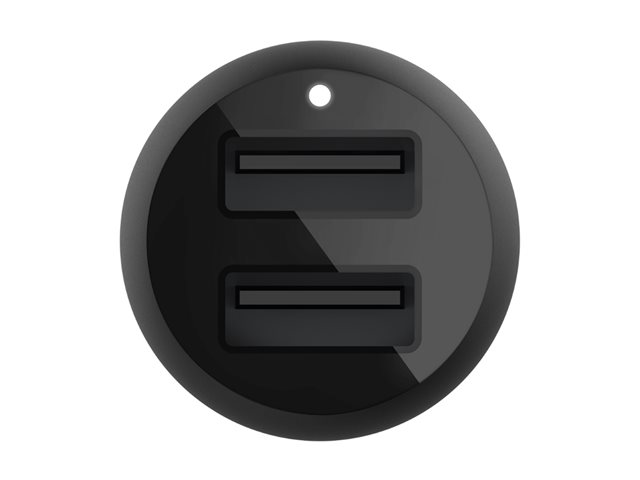 Le chargeur de voiture Dual USB-A Belkin BOOST?CHARGE (24 W), CCB001 est un chargeur de voiture à double port de 24 W. Il peut charger deux appareils sur ses ports USB-A jusqu'à 12 W chacun.