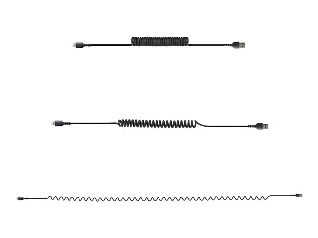 Certifié Mfi - Adaptateur USB Lightning Noir, Gaine en TPE - Cordon Chargeur Iphone/Lightning Spiralé en Fibre Aramide Très Résistant (RUSB2ALT1MBC) - Câble Lightning - USB mâle pour Lightning mâle - 1 m - noir - bobiné