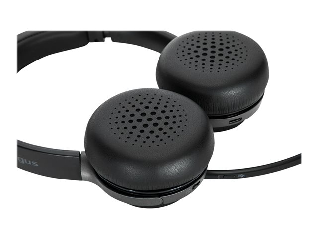 Avec son bandeau et ses oreillettes réglables et rembourrés, ce casque léger et équilibré offre un ajustement confortable et sûr pour un port tout au long de la journée. Le microphone à perche rotatif et omnidirectionnel vous permet de trouver un placement optimal du micro. Équipé de la technologie directionnelle de suppression du bruit, ce micro-casque est réglé avec précision pour supprimer le son ambiant et garantir la clarté de la parole lors de vos conférences téléphoniques. Les doubles haut-parleurs supra-auriculaires sont conçus pour offrir une qualité sonore optimale tout en assurant une suppression passive du bruit pour bloquer les bruits environnants.